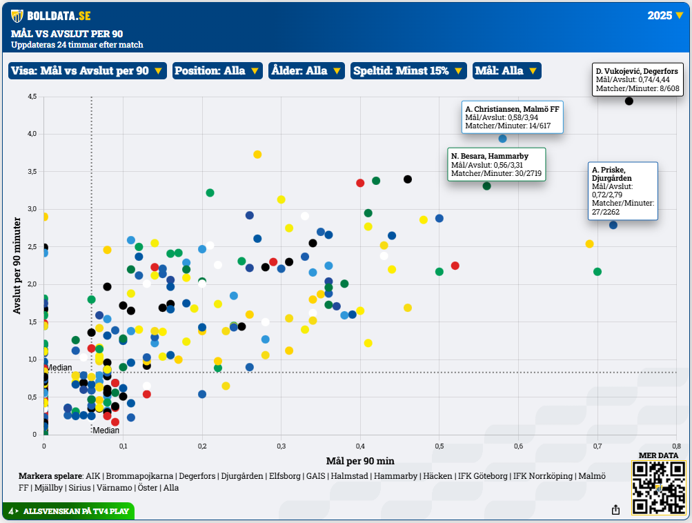 Dijan Vukojevic gjorde en mycket stark höst, och var högst bidragande till att Degerfors klarade sig undan nedflyttning och kval. I statistiken sticker han ut som den spelare i serien som har både flest avslut och flest mål per 90 minuter.