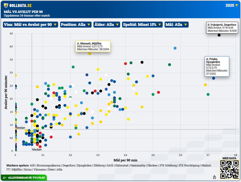 Manneh är en av de spelare som under Allsvenskan 2025 kom till flest avslut per 90 minuter.