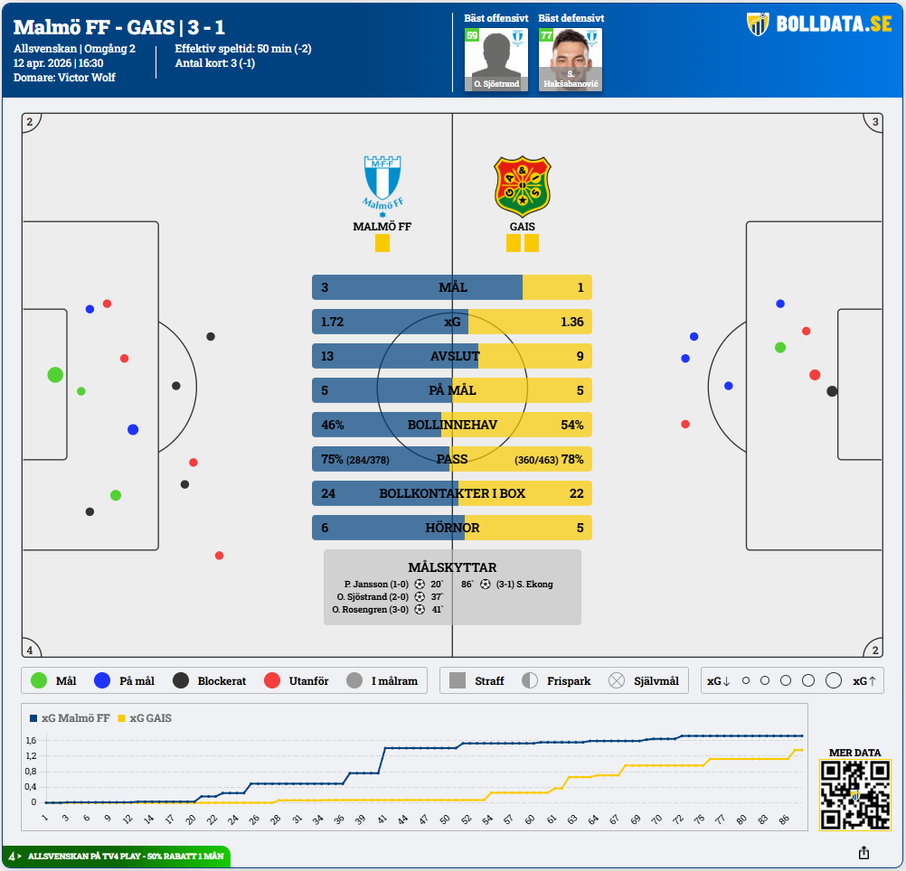 Matchöversikt, MFF – GAIS (3-1)