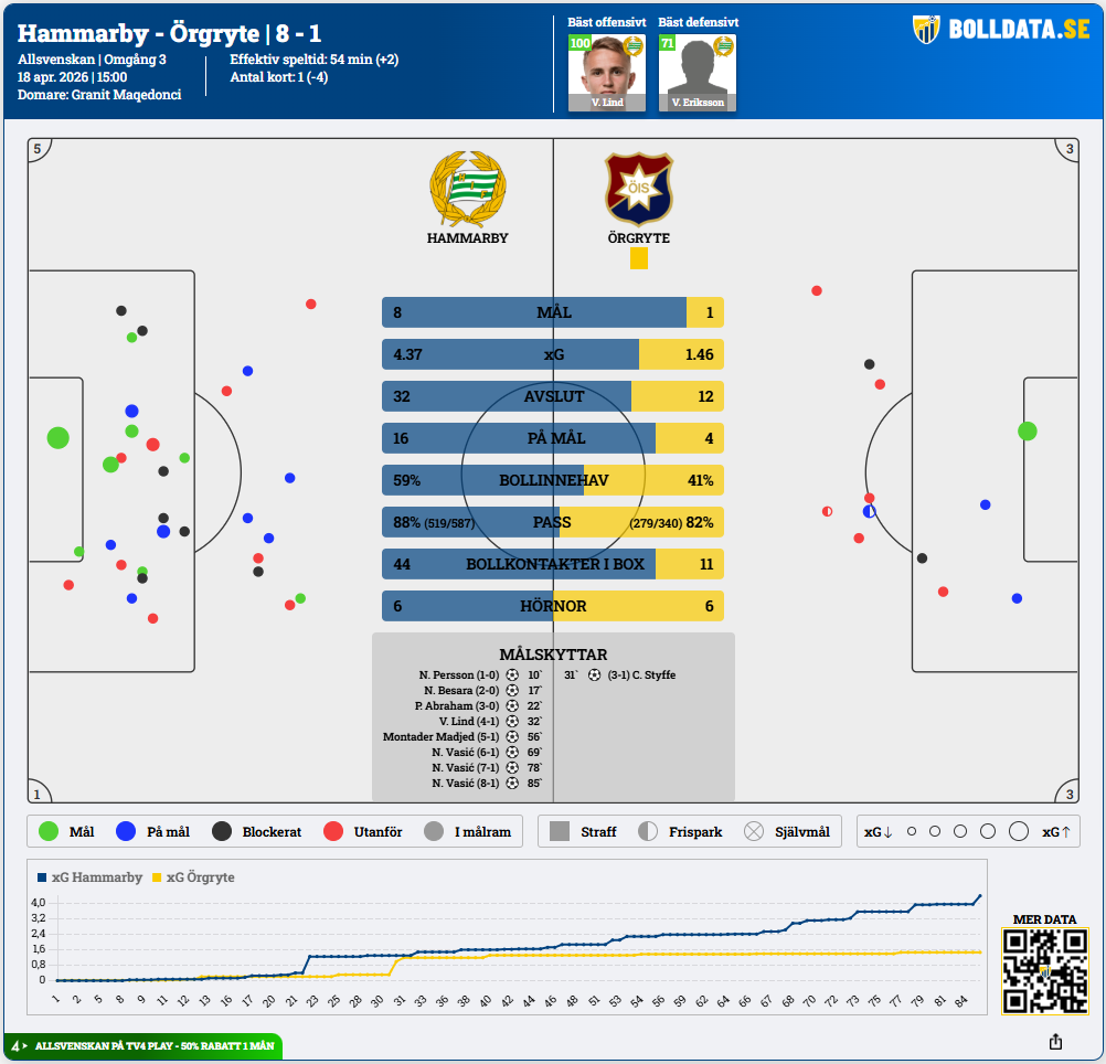 Matchöversikt Hammarby IF – Örgryte IS (8-1)