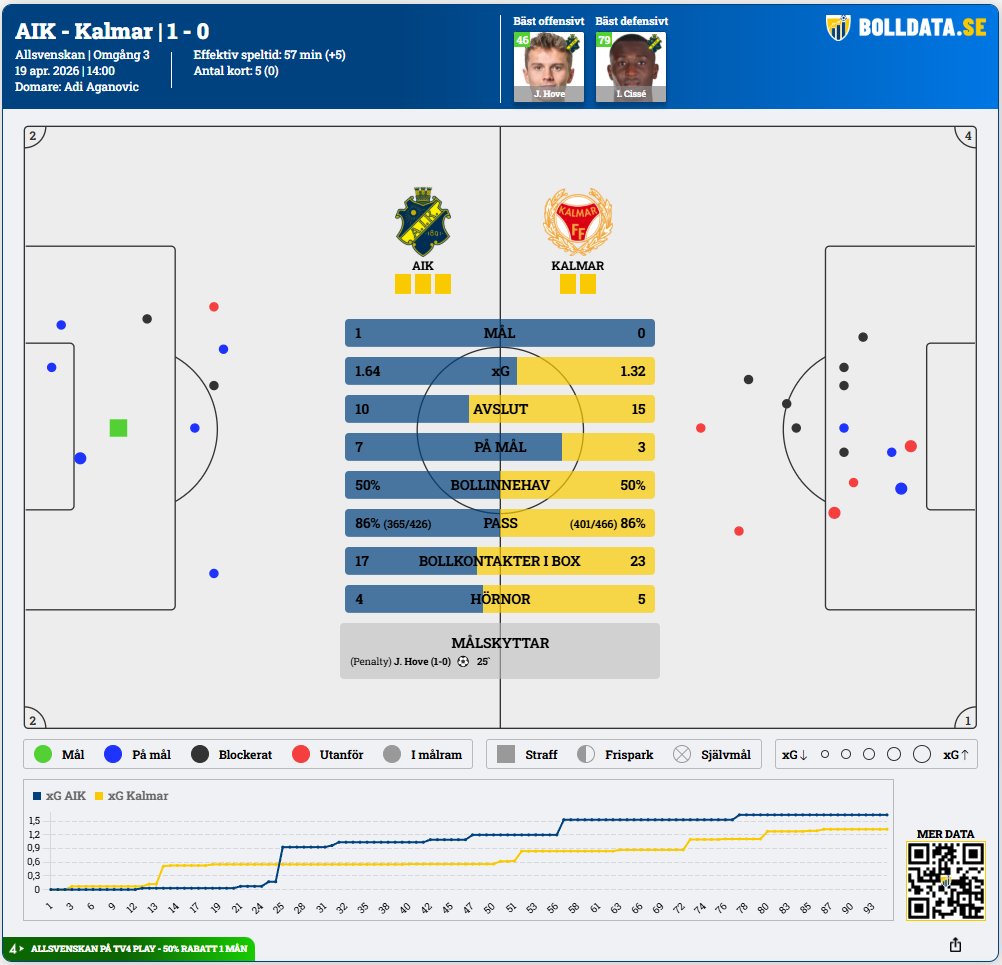 AIK vann med 1–0 mot Kalmar FF, men en av matchens stora snackisar blev Kalmars straffappell i andra halvlek efter en duell mellan Ibrahim Cissé och Charlie Rosenqvist.