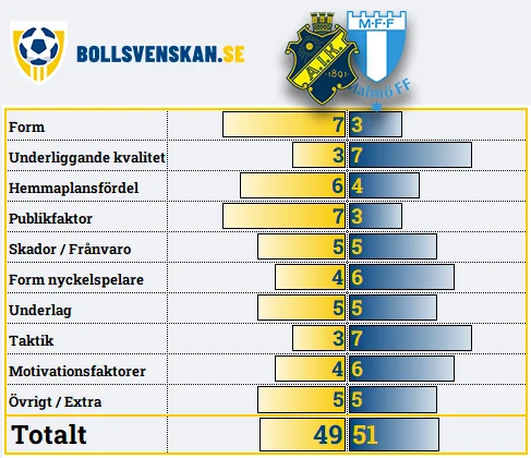 Vi får leta oss tillbaka till 2017 för att hitta den senaste gången Malmö åkte hem med en seger. AIK har dock inte varit det målgladaste laget under Thomasens ledning och hemma på Strawberry Arena har man bara gjort tre mål under de tre senaste matcherna så det vill till sig att försvarsspelet sitter när seriens målgladaste lag kommer på besök.