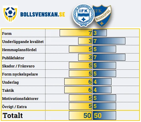 Huvudtränaren Ferran Sibila har fått ordning på bottenlaget och om man visar upp den moralen som vi fått se de senaste veckorna, då kan det räcka långt. Mötet med IFK Norrköping blir lite av en final, och när de två möttes i somras spelade Värnamo en vägvinnande fotboll. 0-4 var det nog få som tänkte att det skulle sluta på förhand, men i efterhand var det till och med siffror som var i underkant. Ett fint minne för laget att blicka tillbaka på och hitta styrka. Dessutom har man inte förlorat mot IFK Norrköping på hemmaplan sedan man gick upp i Allsvenskan.