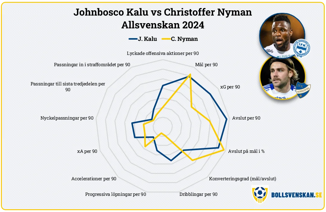 - Christoffer Nyman – IFK Norrköpings lagkapten är helt avgörande för laget, och värdet av att han är tillbaka i speldugligt skick kan inte understrykas tillräckligt mycket. Kan avgöra matcher helt på egen hand och gör det säkert gärna även på Finnvedsvallen.