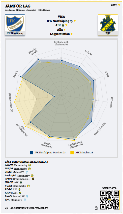 Ikväll klockan 19.10 möts IFK Norrköping och AIK på Platinumcars Arena. Båda lagen ställer upp utan några avstängda spelare, men flera namn riskerar avstängning vid ytterligare en varning. Gästande AIK har starkare form senaste fem matcherna.