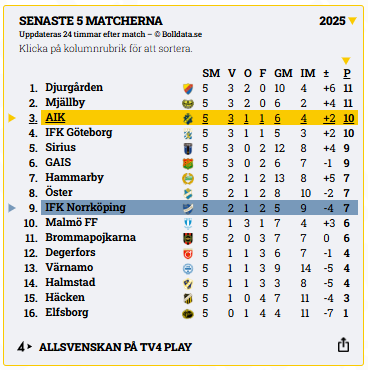 Inga avstängda spelare inför IFK Norrköping – AIK | Gästerna före i formtabellen
