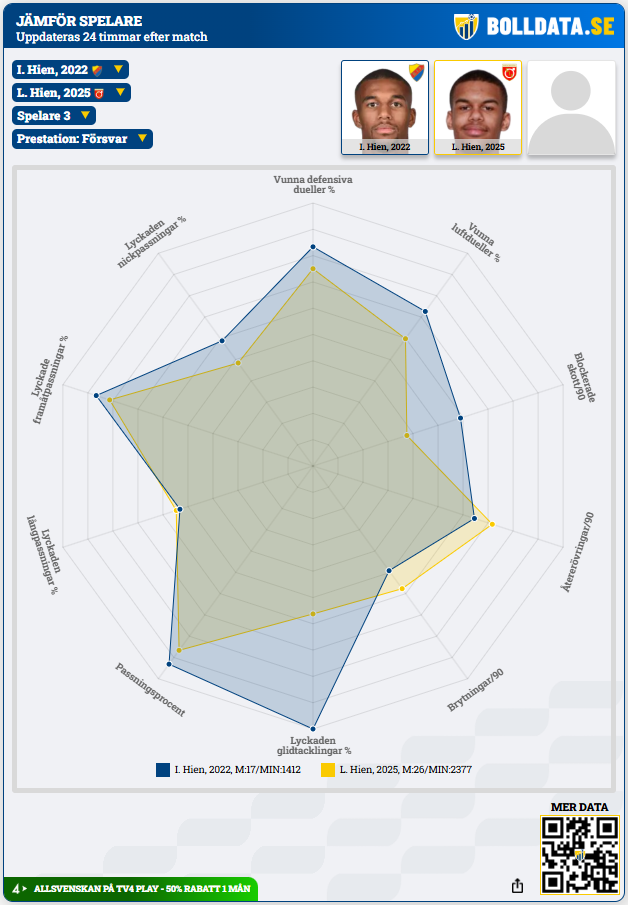 Isak Hien (2022, i Djurgården) vs Leon Hien (2025, i Degerfors)