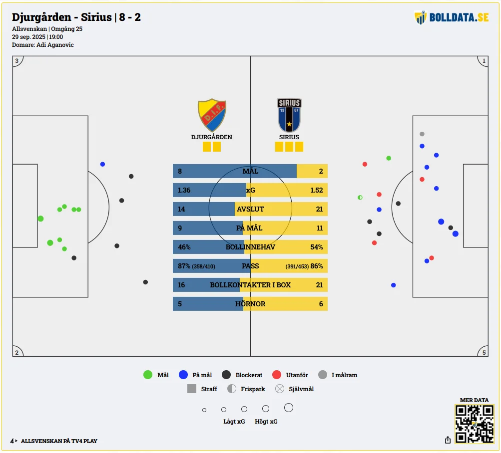 Och helt fel har han kanske inte. Översiktsbilden från matchrapporten hos Bolldata visar att det var jämnare än resultatet antyder – Sirius hade till och med övertag på de flesta parametrarna.