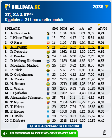 xP per 90 under Allsvenskan 2025