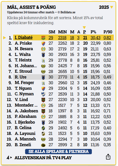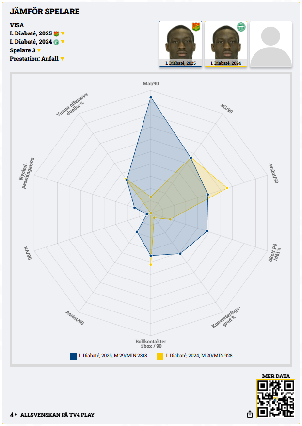 Men han gjorde inte många mål, något som förändrades totalt i GAIS. Diabate vann dessutom poängligan i Allsvenskan 2025, med sina 18 mål och tre assist.