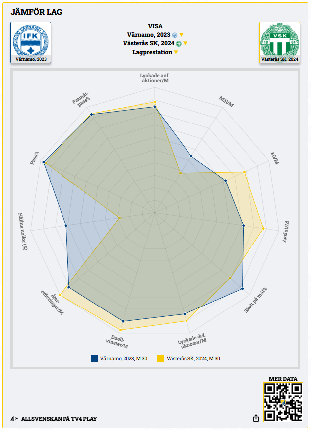 En snabb jämförelse mellan Kim Hellbergs Värnamo 2023 (året innan Hammarby värvade honom) och Kalle Karlssons Västerås SK 2024 (året man åkte ur):