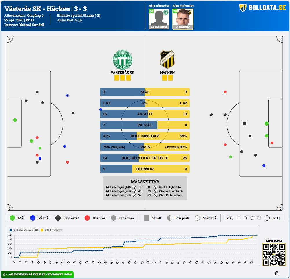 Matchstatistik Västerås SK – BK Häcken (3-3)