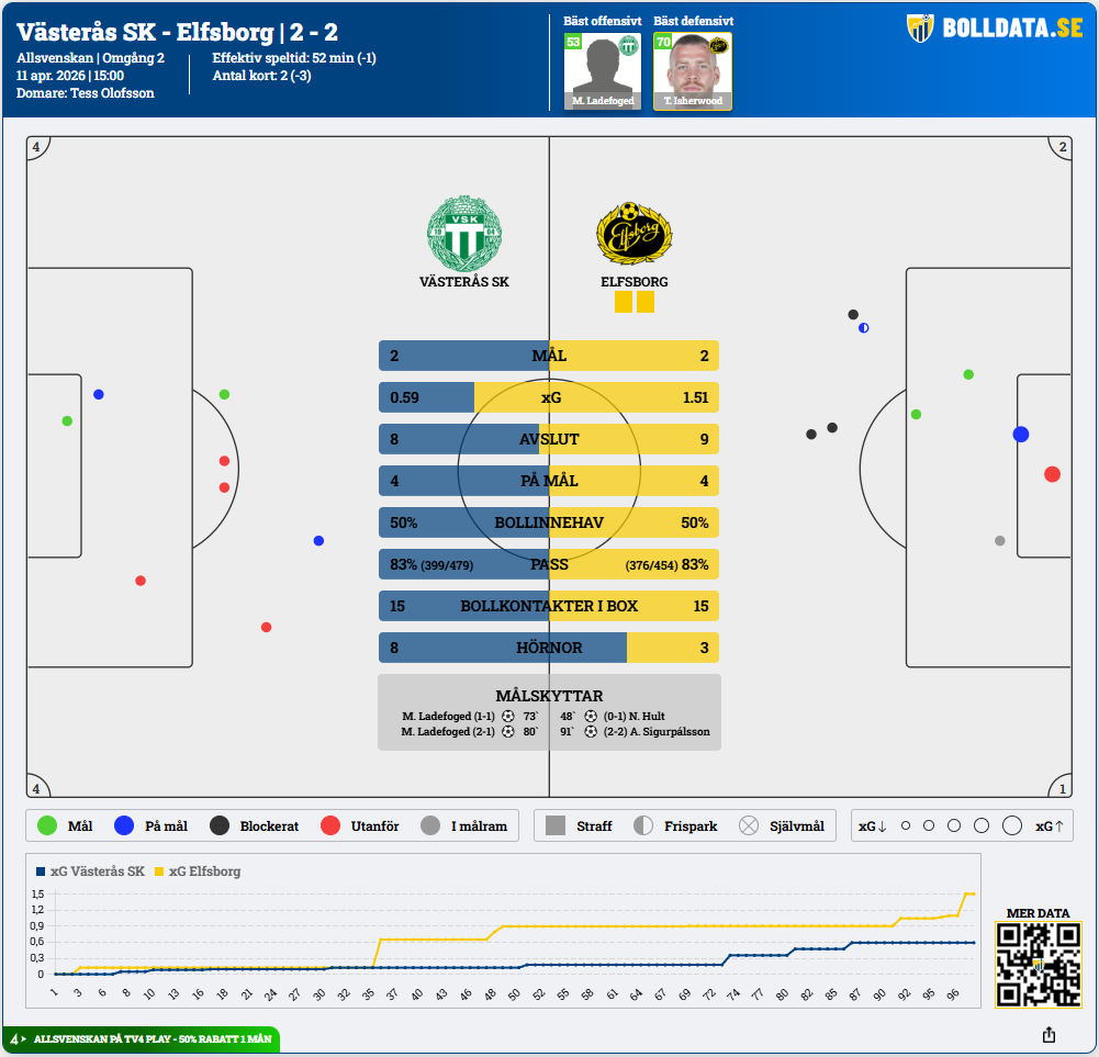 Matchstatistik Västerås SK – Elfsborg (2-2)