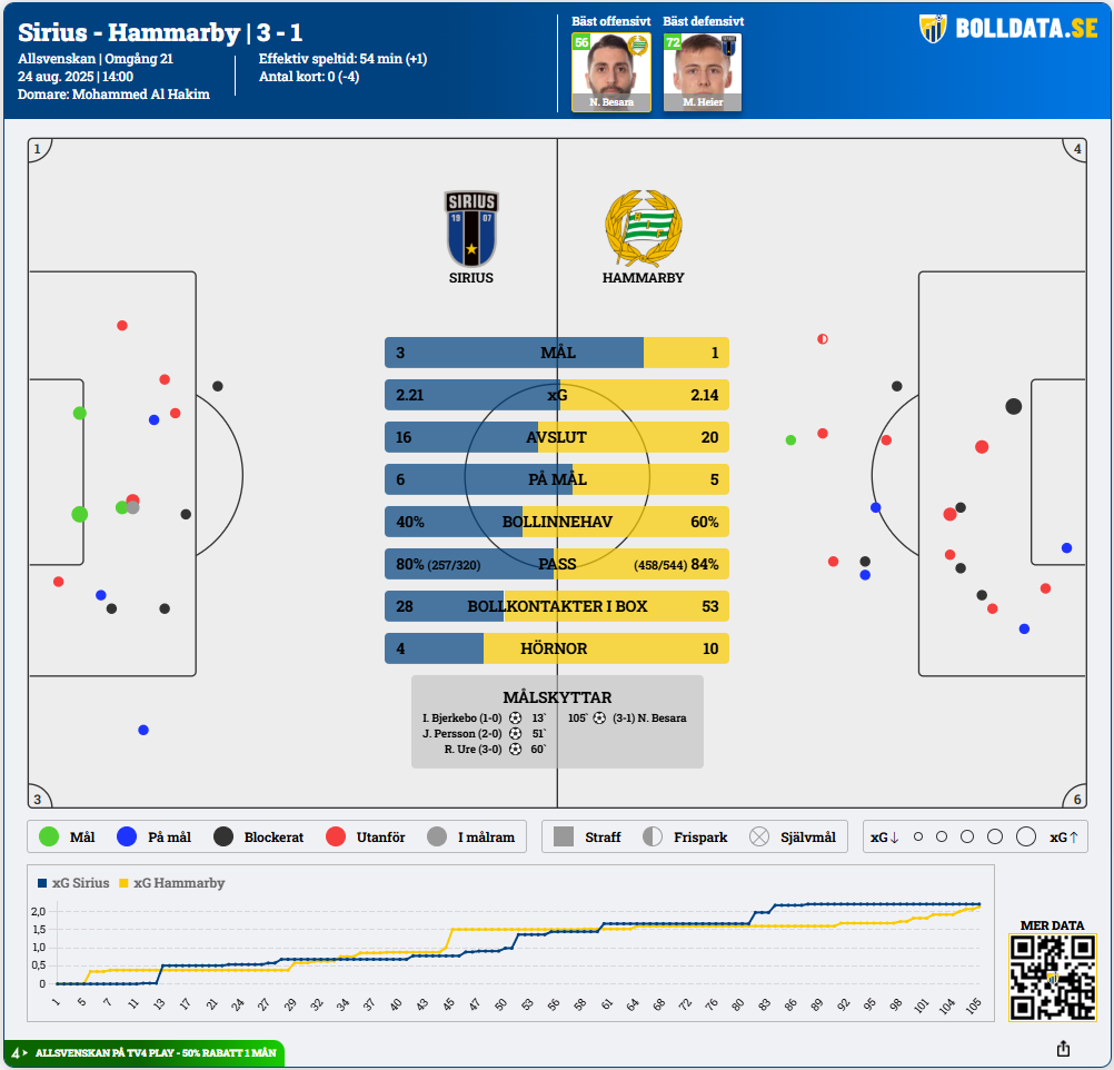 Sirius besegrade Hammarby med 3-1 när lagen möttes under augusti i fjol.