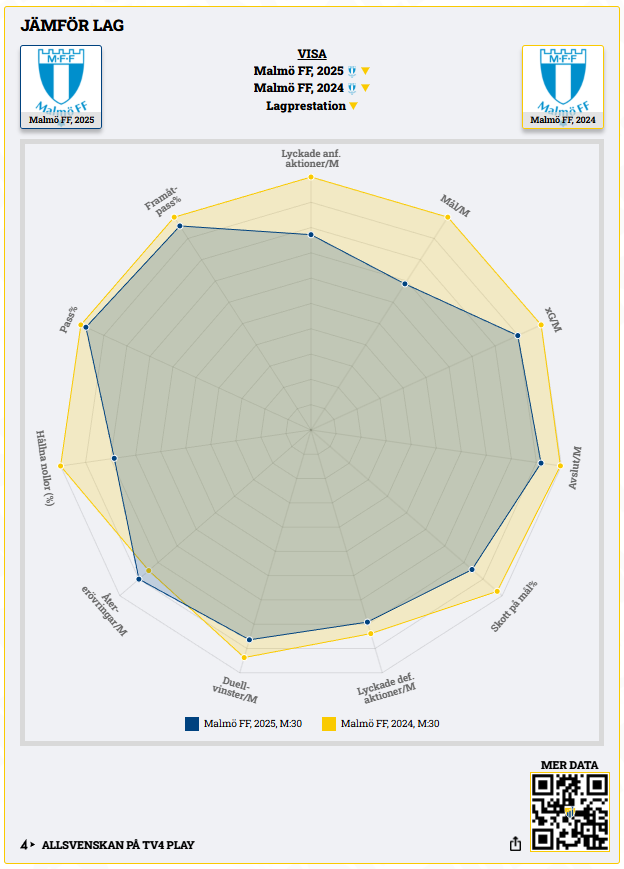 Malmö FF utvecklades i fel riktning på 10 av 11 punkter när vi jämför prestationen 2025 med 2024.
