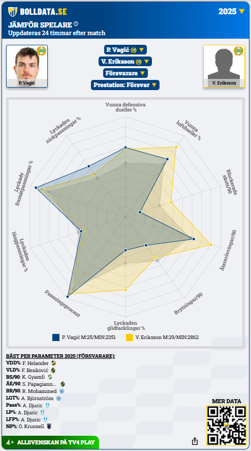 Santeri Haarala 2025, i Djurgården och Degerfors, vs 2024 i Djurgården: