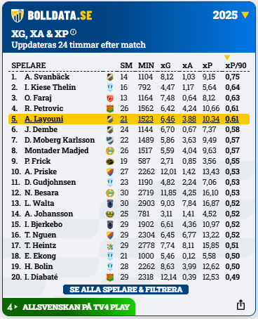 Amor Layouni var under 2025 spelaren med femte högst förväntade poäng per 90 minuter i Allsvenskan.