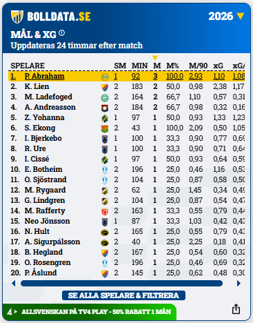 Målet kom efter en assist från målvakten Mads Kikkenborg, där Abdullai visade kyla i avslutet. Se målet här.