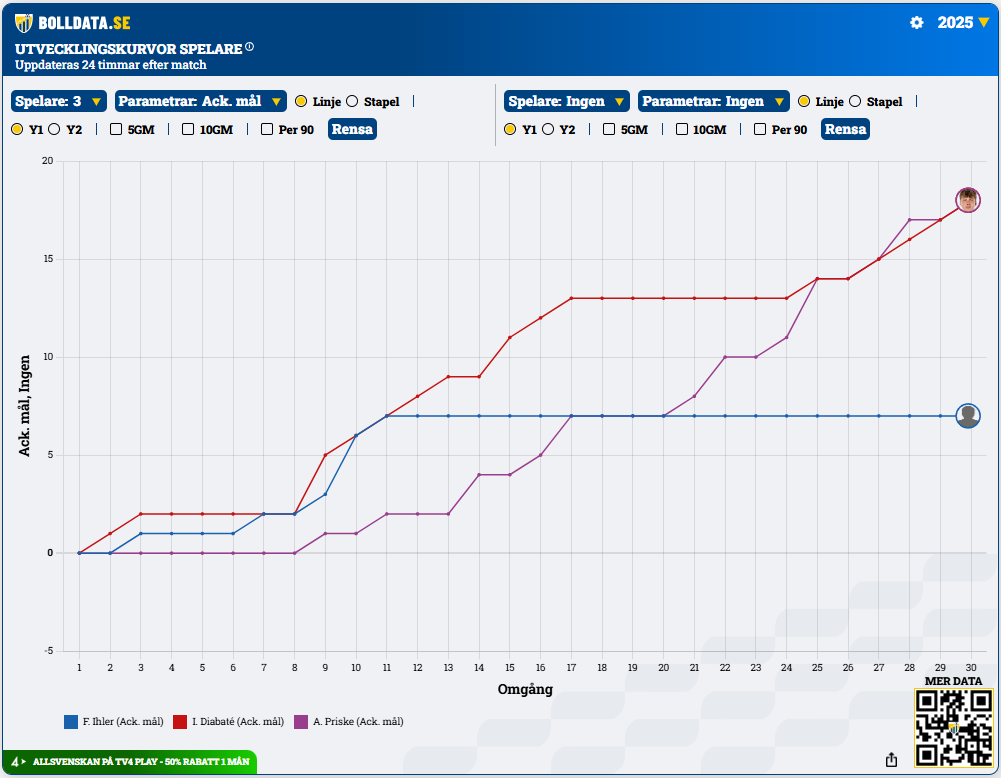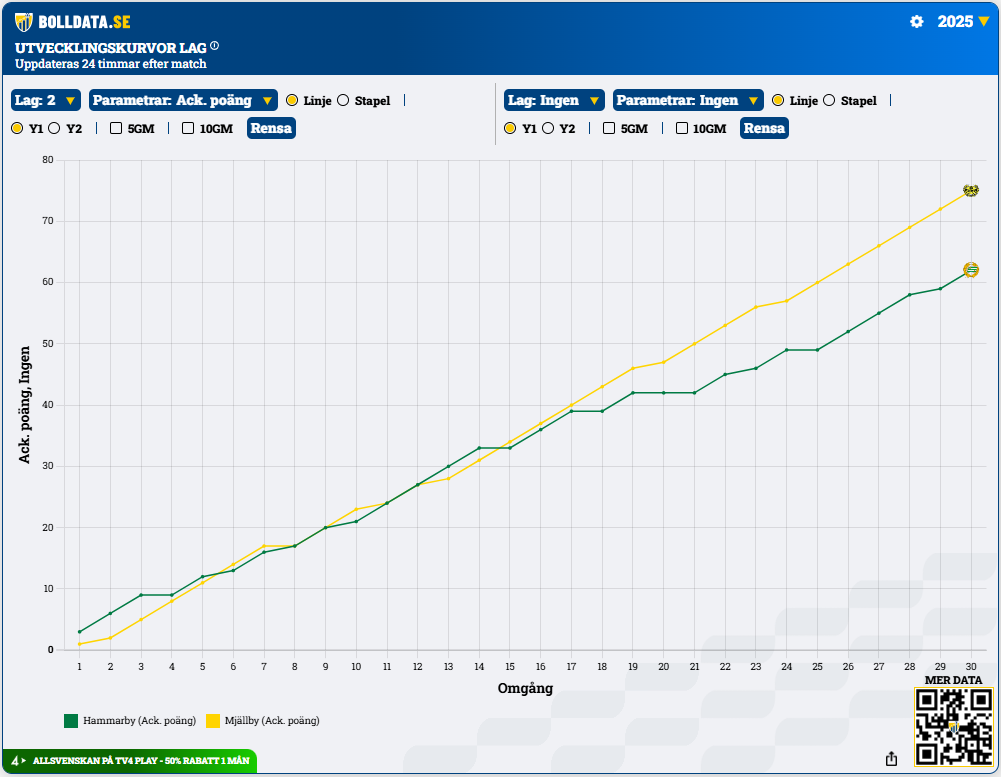 Poängutveckling för Hammarby och Mjällby under säsongen 2025
