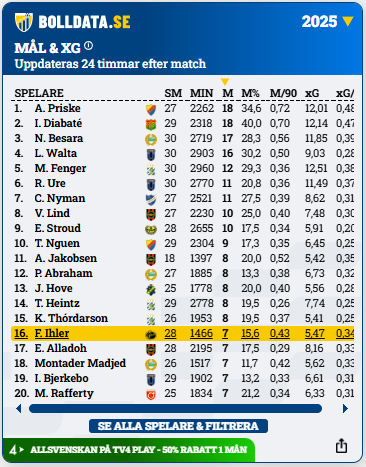 Frederik Ihler gick från skytteligatopp till måltorka när Elfsborg föll ihop under 2025, rapporterar Fotbollskanalen.