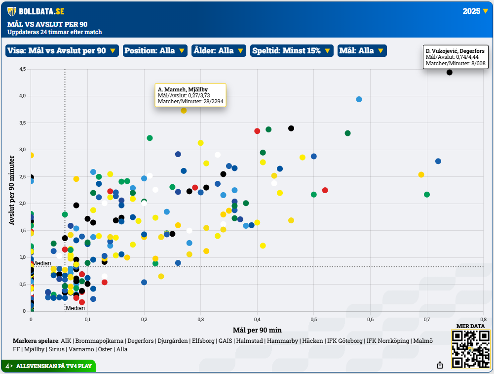 Manneh var under säsongen 2025 en av spelarna som kom till flest avslut per 90 minuter. Samtidigt placerar han sig en bit bakom de mest effektiva spelarna i mål per 90 minuter.