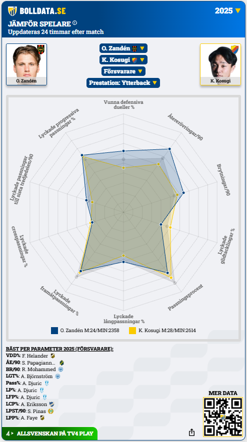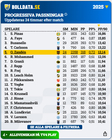 Topplista över smarta passningar per 90 minuter i Allsvenskan 2025: