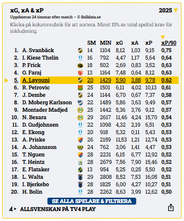I kategorin progressiva passningar per 90 minuter placerar sig Djuric på 16:e plats i serien, näst högst i Malmö där Busanello (trea totalt) slår fler.