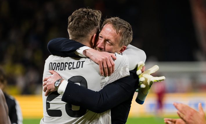 Kristoffer Nordfeldt klev in som förstemålvakt och blev en nyckelspelare när Sverige nådde VM. Efter matchen hyllades han av förbundskapten Graham Potter.