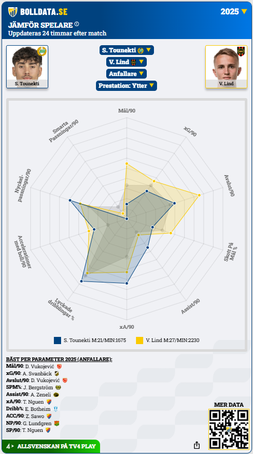 Sebastian Tounekti vs Victor Lind, Allsvenskan 2025