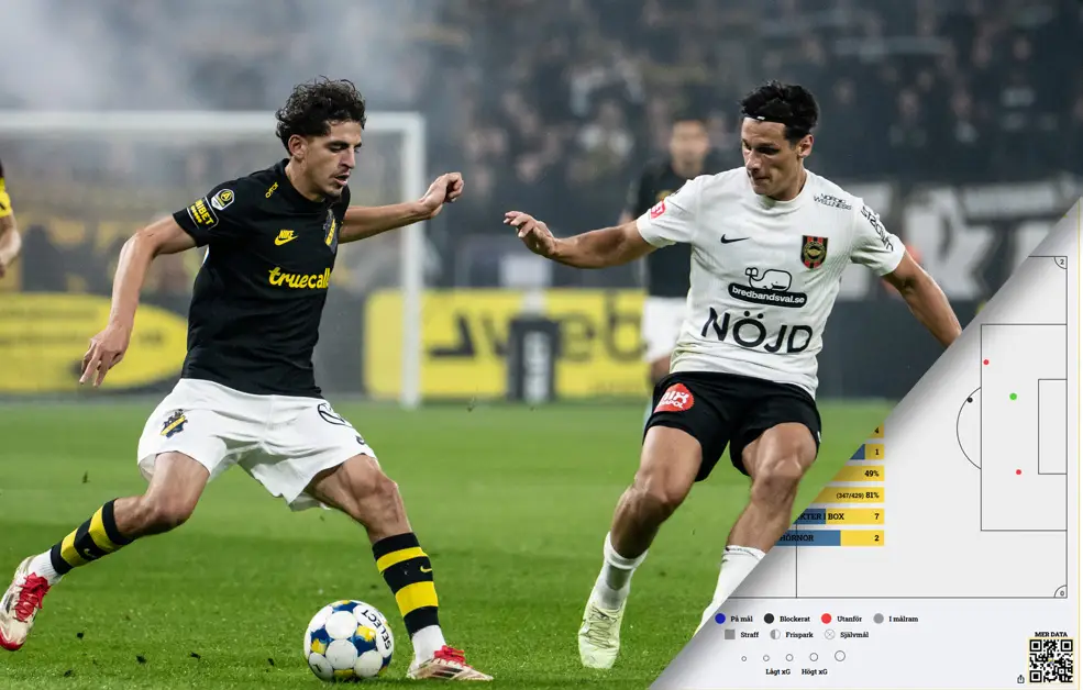 Statistiken är hämtad från matchrapporten på vår systerplattform Bolldata, där data från varje match sammanställs med historik tillbaka till säsongen 2018. Den fullständiga rapporten hittar du här.