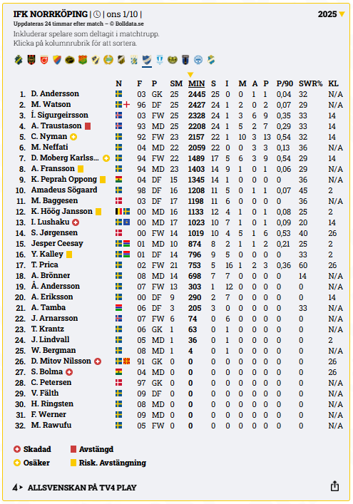 IFK Norrköping förbereder sig för matchen mot GAIS och det ser ut som att Christoffer Nyman och David Moberg Karlsson missar matchen. De båda profilerna är skadade och osäkra till spel, berättar tränaren Martin Falk för NT.