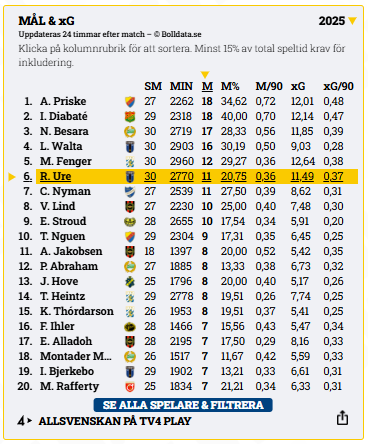 Ure gjorde elva mål för Sirius i Allsvenskan 2025. Han har en bakgrund i Glasgow Rangers.