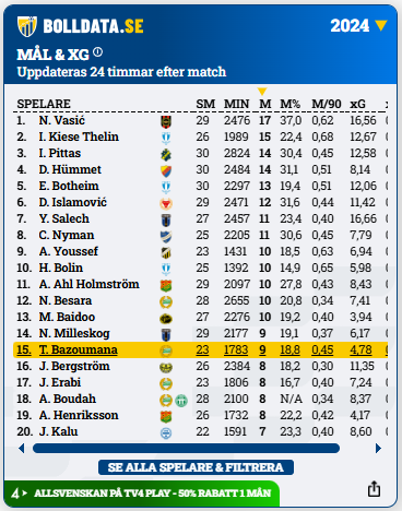 Allsvenska skytteligan 2024