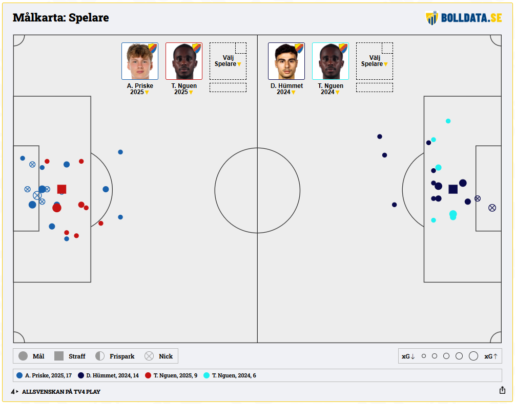 Målkarta: Tokmac Nguen och August priske 2025 vs Tokmac Nguen och Deniz Hümmet 2024