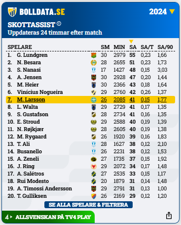 Skottassist i Allsvenskan 2024