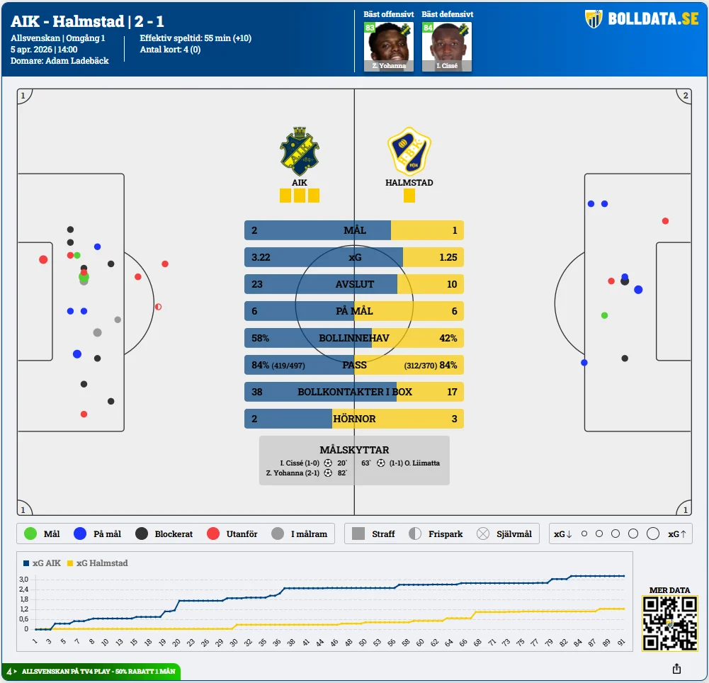 AIK:s stjärnskott Zadok Yohanna dominerade mot Halmstad i premiären. 18-åringen avgjorde – och levererade enligt FotbollSTHLM siffror som sticker ut även i ett större perspektiv.